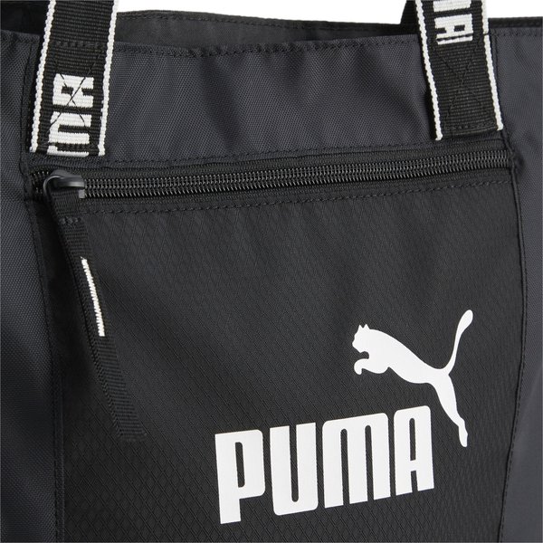 Torba Shopper Core Base Logo 13L Puma to stylowy i funkcjonalny wybór dla osób aktywnych. Wykonana w co najmniej 50% z materiałów pochodzących z recyklingu, dba o środowisko. Posiada dwukierunkowy metalowy zamek, praktyczne kieszenie oraz uchwyt do noszenia. Podszewka z wytłaczanym logo marki dodaje stylu. Idealna na co dzień, zapewniając swobodę i praktyczność w jednym. Dzięki logo na przedniej stronie i uchwytach, zawsze będziesz modna i gotowa na aktywny dzień.