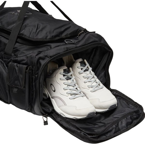 Praktyczność torby Urban Ruck RC Duffle 97L Oakley jest widoczna również w jej licznych kieszeniach i przegrodach. Główna komora zapinana na zamek błyskawiczny umożliwia szybki i łatwy dostęp do wnętrza, a dwie boczne kieszenie zapinane na zamek idealnie nadają się do przechowywania mniejszych przedmiotów. Kieszeń na buty zapinana na zamek błyskawiczny pozwala na oddzielenie obuwia od reszty bagażu, co zapewnia higieniczność i porządek. Miejsce na dokumenty umożliwia szybki dostęp do nich, co znacznie ułatwia podróżowanie. Dodatkowe kieszenie z rzepem oraz przednia kieszeń z logo Oakley podkreślają nowoczesny design torby, nadając jej stylowy wygląd.