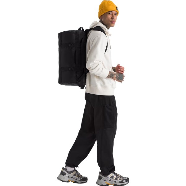 Torba z funkcją plecaka Base Camp Duffel S 50L marki The North Face to niezawodny towarzysz dla tych, którzy cenią sobie wygodę, trwałość i elastyczność podczas podróży, niezależnie od tego, czy wybierają się na górską wyprawę, czy na trening w miejskiej siłowni.