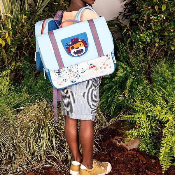 Tornister Pirat z kolekcji Lew Jack marki Lilliputiens jest funkcjonalny i wygodny, przyda się na wiele okazji. Jest pakowny, można bez trudu pomieścić w nim książki formatu A4. Szeroka komora główna zapinana jest na suwak, a klapa która przykrywa główną kieszeń, zapinana na rzep. Tornister Pirat Lew Jack posiada miękkie i grube szelki z możliwością regulacji. Dodatkowo z przodu posiada pasek stabilizujący i odciążający plecy, który jest łatwo zapinany na zatrzask. Plecak uszyto z wysokiej jakości materiałów - łatwy w czyszczeniu, odporny na wilgoć. Uchwyt do zawieszania np. w szatni znajduje się w górnej części tornistra, a elementy odblaskowe są umieszczone z przodu tornistra jak i na szelkach. Dodatkowym atutem jest także wizytówka umieszczona na spodzie klapy zamykającej główną komorę. Można zapisać na niej imię dziecka i numer kontaktowy rodzica.