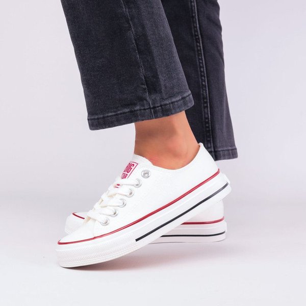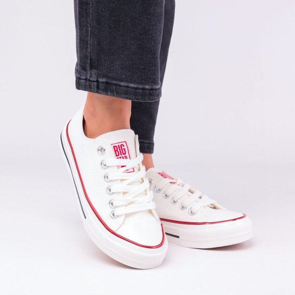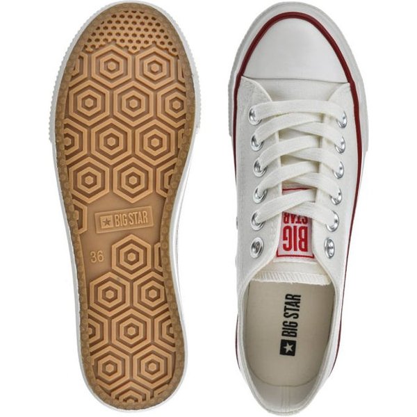 Trampki Big Star to idealne buty lifestyle dla kobiet. Wykonane z wysokiej jakości materiałów tekstylnych, gwarantują wygodę i komfort noszenia. Dzięki swojemu kolorowi łatwo dopasują się do różnych stylizacji, zarówno na co dzień, jak i na bardziej formalne okazje. Wygodna wkładka Hi-Poly zapewnia dodatkowy komfort, a solidna podeszwa z gumy gwarantuje dobrą przyczepność na różnych powierzchniach. Trampki są lekkie, przewiewne i posiadają wzmocnienie na pięcie. Dodatkowo, mają niski profil, metalowe oczka na sznurówki oraz logo na bocznej części cholewki, co sprawia, że są doskonałym wyborem na wiosnę i lato.