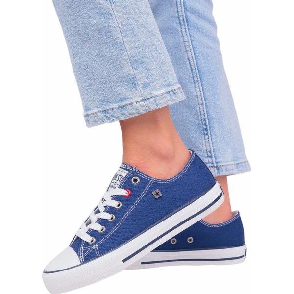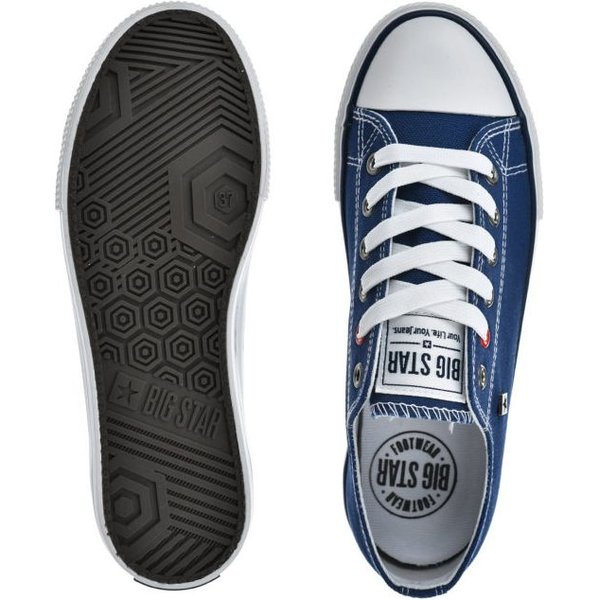 Trampki TC24058 Wm's Big Star to doskonałe obuwie lifestyle dla kobiet, idealne na wiosnę i lato. Wykonane z wysokiej jakości materiałów tekstylnych, zapewniają komfort noszenia przez cały dzień. Niski profil, sznurowane zapinanie i okrągły nosek zapewniają modny wygląd i wygodę. Gumowa podeszwa gwarantuje dobrą przyczepność, a wzmocnienie na czubku zapewnia trwałość. Trampki posiadają także metalowe oczka na sznurówki, logo marki na boku i języku oraz szew dekoracyjny. Dodatkowo, wkładka z nazwą marki oraz wzór na spodzie podeszwy nadają im oryginalny charakter. To idealny wybór dla stylowych kobiet na codzienne i formalne okazje.