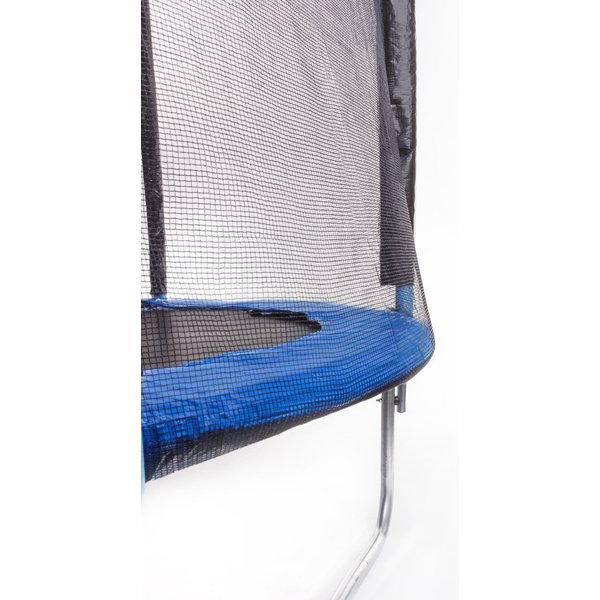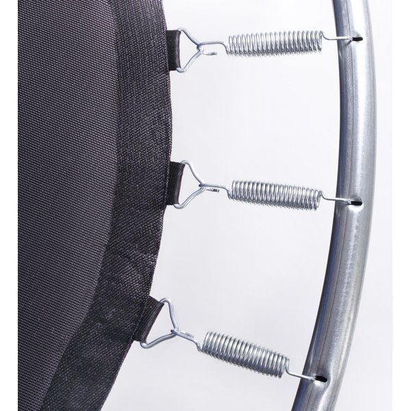 Stalowe sprężyny są w pełni ocynkowane, co sprawia, że będą spisywać się jak nowe nawet po wielu sezonach. Znajdują się pod wytrzymałą i miękką osłoną o grubości aż 10mm, więc nie są wyczuwalne podczas odbijania się. Dzięki temu skacząc, odczuwasz pod stopami wyłącznie delikatne i elastyczne wykończenie. Jako że to produkt do użytku zewnętrznego, musi być odporny na czynniki pogodowe, zwłaszcza promieniowanie UV. W tej kwestii też nie masz się o co martwić. Materiał nie wyblaknie ani nie osłabnie pod wpływem promieniowania słonecznego przez niewiarygodnie długi czas, czego dowodzą testy UV, jakie przeszła prezentowana trampolina.