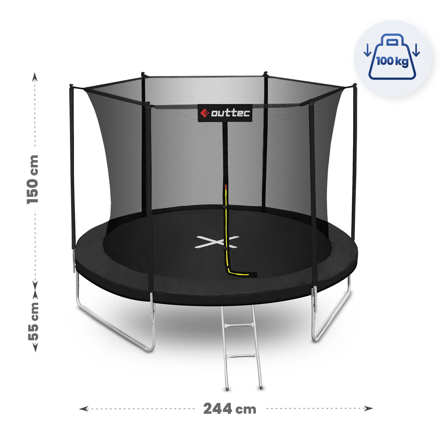 Trampolina Inside Net 244 cm marki Outtec to propozycja dla rodzin szukających aktywnej rozrywki na świeżym powietrzu. Wzmocniona konstrukcja i odporne na korozję materiały gwarantują trwałość nawet przy intensywnym użytkowaniu i zmiennych warunkach pogodowych. Przemyślany projekt z wewnętrzną siatką, osłonami konstrukcji oraz dwustopniową drabinką zapewnia łatwy dostęp i zwiększa komfort zabawy. Montaż jest szybki i intuicyjny, dzięki czemu trampolina gotowa jest do użytku bez zbędnych przygotowań. To idealne rozwiązanie na wspólne chwile ruchu i śmiechu w ogrodzie.