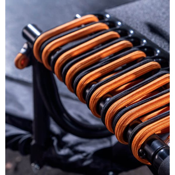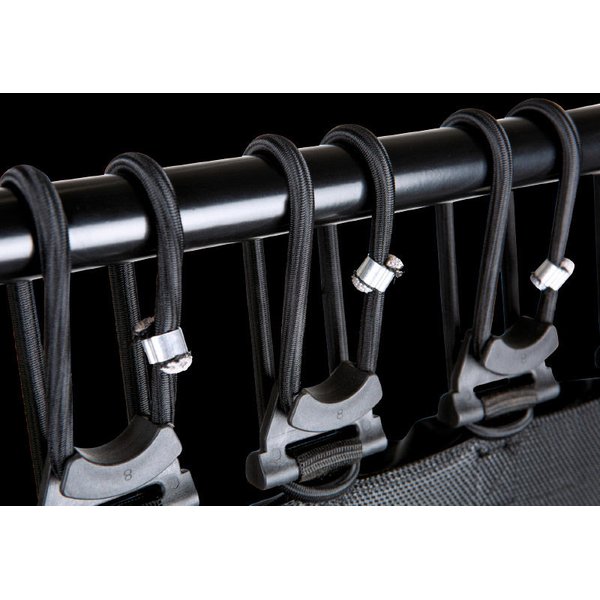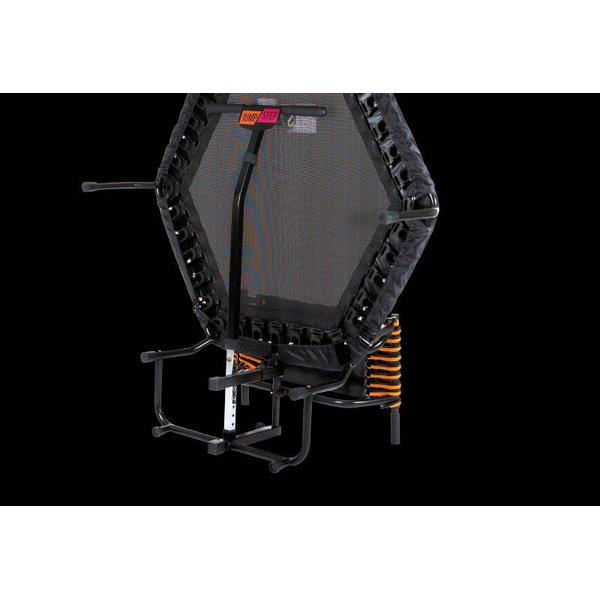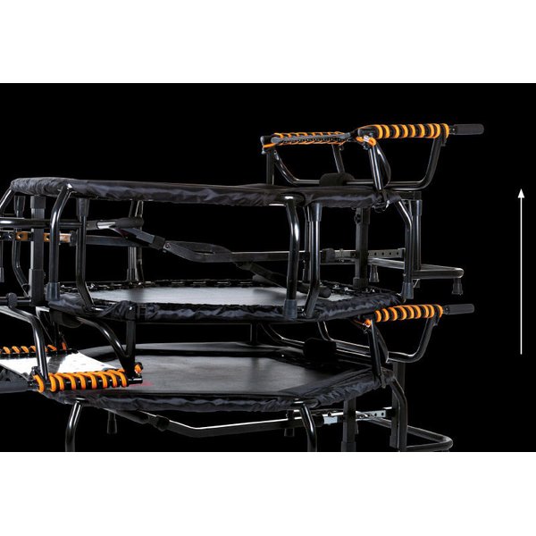 Jumpstep Hammer wyróżnia się solidną konstrukcją, która wytrzymuje intensywne sesje treningowe. Trampolina wyposażona jest w antypoślizgowe gumowe stopki, które zapobiegają przesuwaniu się podczas użytkowania. Dodatkowo, ochronna osłona krawędzi minimalizuje ryzyko niekontrolowanych ruchów poza matą. Jednym z atutów trampoliny jest jej kompaktowy rozmiar, który sprawia, że idealnie nadaje się do mniejszych mieszkań. Przemyślany mechanizm składania pozwala na szybkie i łatwe przechowywanie, gdy nie jest używana. Jednym ruchem można zdemontować poręcz i schować urządzenie, oszczędzając cenną przestrzeń w domu. Elastyczne gumki studyjnej jakości z indywidualnymi punktami mocowania sprawiają, że trampolina jest wyjątkowo elastyczna i łatwa w montażu. Dzięki temu, użytkownicy mogą cieszyć się płynnym i dynamicznym treningiem bez obaw o stabilność urządzenia.