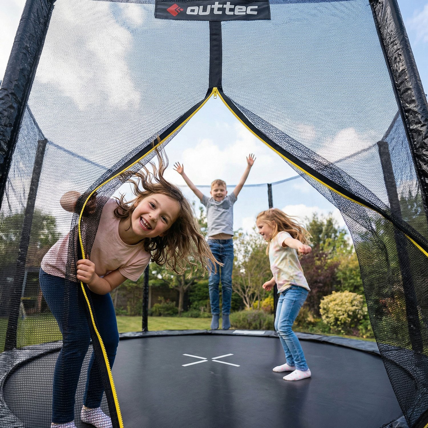 Trampolina Outside Jump z systemem TotalSafe to solidna i dopracowana konstrukcja, która dzięki dodatkowym wzmocnieniom zachowuje stabilność nawet podczas intensywnej, dynamicznej zabawy. Odporne na rdzę elementy oraz wytrzymałe materiały sprawiają, że model doskonale radzi sobie w zmiennych warunkach atmosferycznych i może być użytkowany w ogrodzie przez wiele sezonów. Wewnętrzna siatka ochronna oraz osłony konstrukcyjne zwiększają ochronę użytkowników, pozwalając cieszyć się swobodnymi skokami. Szerokie wejście, dwupoziomowa drabinka i intuicyjny montaż sprawiają, że cała rodzina może szybko rozpocząć wspólną zabawę.
