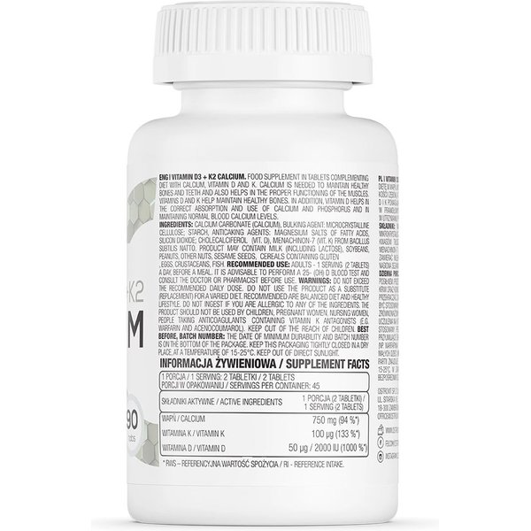 Vitamin D3+K2 Calcium 90 tabletek OstroVit