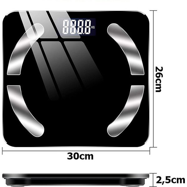 Waga wykonana jest z wysokiej jakości materiałów, przez co jest wytrzymała oraz będzie Ci towarzyszyć na lata. Dzięki nowej technologii, możemy połączyć ją za pomocą bluetooth oraz zarządzać i monitorować swoje postępy z poziomu swojego telefonu. Aplikacja dostępna jest zarówno na Android jak iOS. Możesz śledzić takie rzeczy jak waga, masa ciała, masa mięśniowa. masa tkanki tłuszczowej i kostnej, poziom tkanki kostnej, zawartość wody, tłuszczu, mięśni w organizmie, BMI, BMR. Aplikacja pozwoli Ci na analizę wyników wstecz nawet dla 8 użytkowników. Cztery antypoślizgowe nóżki zapewnią Ci bezpieczeństwo podczas użytkowania.