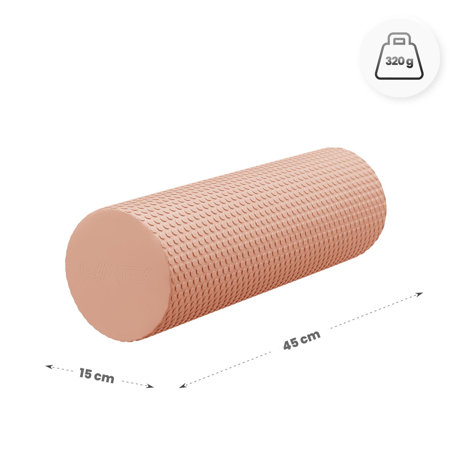 Roller Gymtek został zaprojektowany z myślą o trwałości. Wewnętrzny rdzeń z wytrzymałego tworzywa PP zapewnia stabilność i odporność na duże obciążenia, natomiast zewnętrzna warstwa z pianki EVA chroni powierzchnię przed odkształceniem, nawet przy codziennym, intensywnym użytkowaniu.