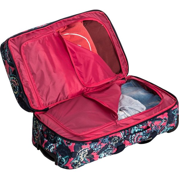 Walizka podróżna InThe Clouds marki Roxy pozwoli Ci podróżować w dalekie zakątki świata z niesamowitą przyjemnością. Fantazyjny nadruk na całej powierzchni sprawi, że nie przejdziesz niezauważona, a przecież każda kobieta potrzebuje odrobiny uwagi! Do tego wysoka wytrzymałość oraz spora pojemność, ponieważ aż 85L pozwolą Ci zabrać nie tylko niezbędne rzeczy. Dzięki licznym dodatkowym kieszeniom możesz idealnie rozplanować cały swój ekwipunek tak, by dostęp do najważniejszych rzeczy był szybki i prosty.