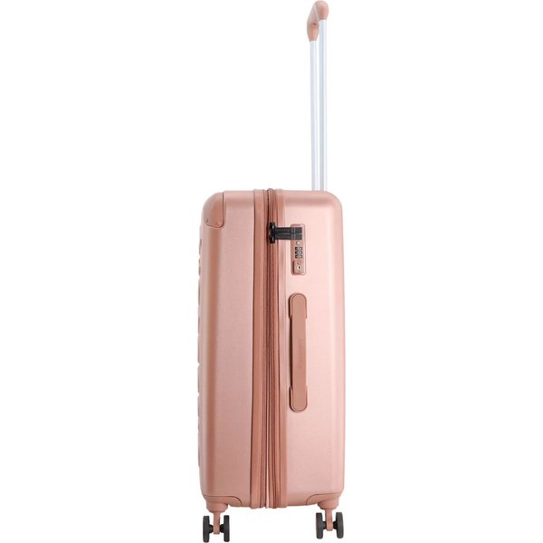 Dzięki solidnej konstrukcji z ABS, twarda obudowa zapewnia ochronę przed uszkodzeniami podczas transportu. Praktyczne cztery obrotowe kółka na łożyskach metalowych umożliwiają płynne poruszanie się na każdym podłożu, co sprawia, że podróżowanie staje się przyjemnością. Dodatkowo, wysuwana rączka z blokadą umożliwia dostosowanie jej wysokości do własnych preferencji. Boczny uchwyt ułatwia transport walizki, szczególnie gdy potrzebujesz z nią przejść schodami.