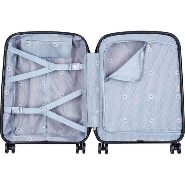 Walizka kabinowa Belmont Plus Delsey Paris to doskonałe rozwiązanie dla podróżników, którzy cenią sobie wygodę i bezpieczeństwo. Polipropylenowa skorupa oraz wbudowane wzmocnienia przeciwwstrząsowe chronią zawartość walizki przed uszkodzeniem. Zamki z blokadą TSA oraz system suwaków ZIP SECURITECH zwiększają ochronę. Walizka posiada również możliwość poszerzenia komory głównej o 4 cm oraz dobrze zaprojektowane wnętrze z pasami mocującymi, przegródkami i kieszeniami. 4 ciche podwójne koła oraz zintegrowany górny uchwyt na stelażu zapewniają wygodę prowadzenia, a dodatkowy uchwyt boczny ułatwia przenoszenie. Walizka jest zgodna ze standardami bagażu podręcznego większości tanich linii lotniczych.