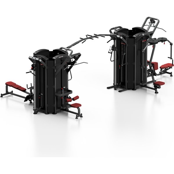 2 stacje linowe - wyposażone zostały w specjalny system regulacji położenia rączek, co daje możliwość wykonania bardzo dużej ilości różnych ćwiczeń w zależności od ich ułożenia. Taka regulacja odbywa się za pomocą praktycznego bolca sprężynowego, dzięki czemu jednym ruchem ręki możemy przystosować maszynę do interesującej nas pozycji.