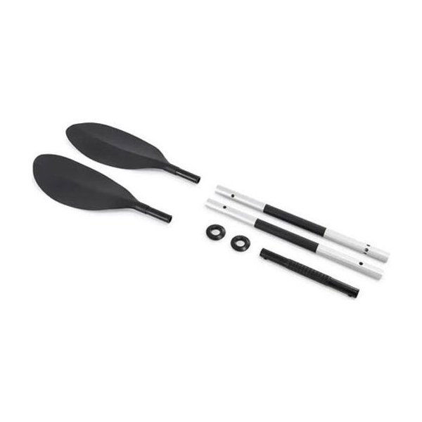 Komplet wioseł kajakowych marki Intex, zostało stworzone z myślą o najbardziej ekstremalnych spływach oraz komforcie pływania. Konstrukcja wykonana z aluminium zachowuje niską wagę, dzięki której wiosła nie idą od razu na dno. Natomiast profilowane i żebrowane pióra, skutecznie odpychają wodę.