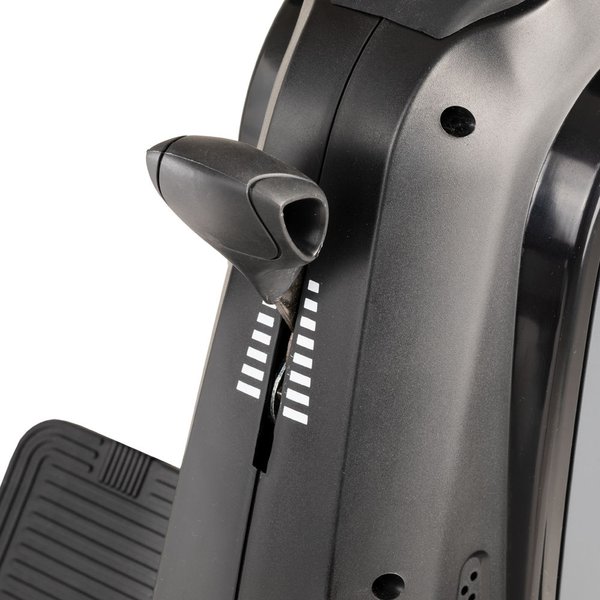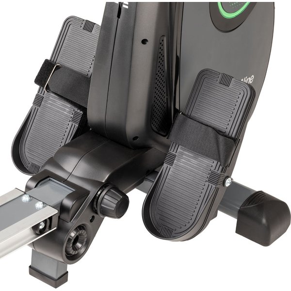 Maszyna o wymiarach 180 x 48 x 98 centymetrów składa się do mniejszej konstrukcji, dla której z pewnością znajdziesz miejsce nawet na małym metrażu. Ważące nieco ponad 30 kilogramów urządzenie z łatwością przetransportujesz dzięki przeznaczonym do tego kołom. Wygodne, profilowane siedzisko nie sprawia dyskomfortu nawet podczas długich treningów. Duże pedały o powierzchni ze specjalnymi wypustkami mają regulowany pasek na rzep przez co idealnie dopasujesz je do swoich stóp tak, by podczas ćwiczeń nie wypadały. Długość ruchu siedziska wynosi aż 98 centymetrów i pozwala na pełny, płynny ruch. Trening na tej maszynie poprawia kondycję, a także wzmacnia mięśnie nóg, brzucha, klatki piersiowej i ramion. Solidna konstrukcja z magnetycznym układem hamowania pozwala na cichą pracę, więc możesz trenować o każdej porze dnia i nocy bez przeszkadzania domownikom i sąsiadom. Zasilany dwoma bateriami AAA ekran pozwala śledzić takie parametry jak czas, odległość, liczbę ruchów na minutę, kalorie. Możesz także ustawić cel treningu dotyczący wymienionych wcześniej wartości. Podpórka na tablet lub smartfon pozwoli Ci oglądać ulubione seriale lub słuchać muzyki podczas ćwiczeń. Model jest przeznaczony dla użytkowników nie wyższych niż 195 centymetrów i których waga nie przekracza 150 kilogramów.