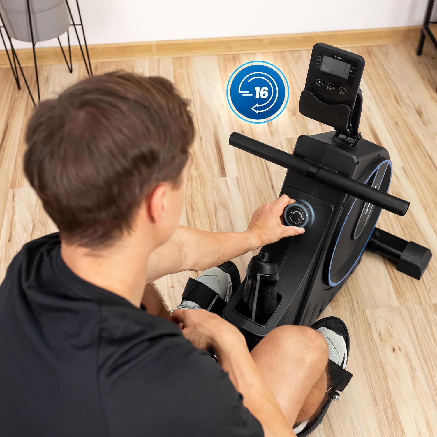 Użytkownik może precyzyjnie dostosować poziom oporu do swojej kondycji i celów. 16 poziomów oporu pozwala progresywnie zwiększać trudność ćwiczeń, co wspiera rozwój siły i wytrzymałości bez nagłego przeciążenia organizmu. Dzięki temu sprzęt nadaje się do różnych rodzajów treningu – od lekkich ćwiczeń cardio po intensywne interwały.