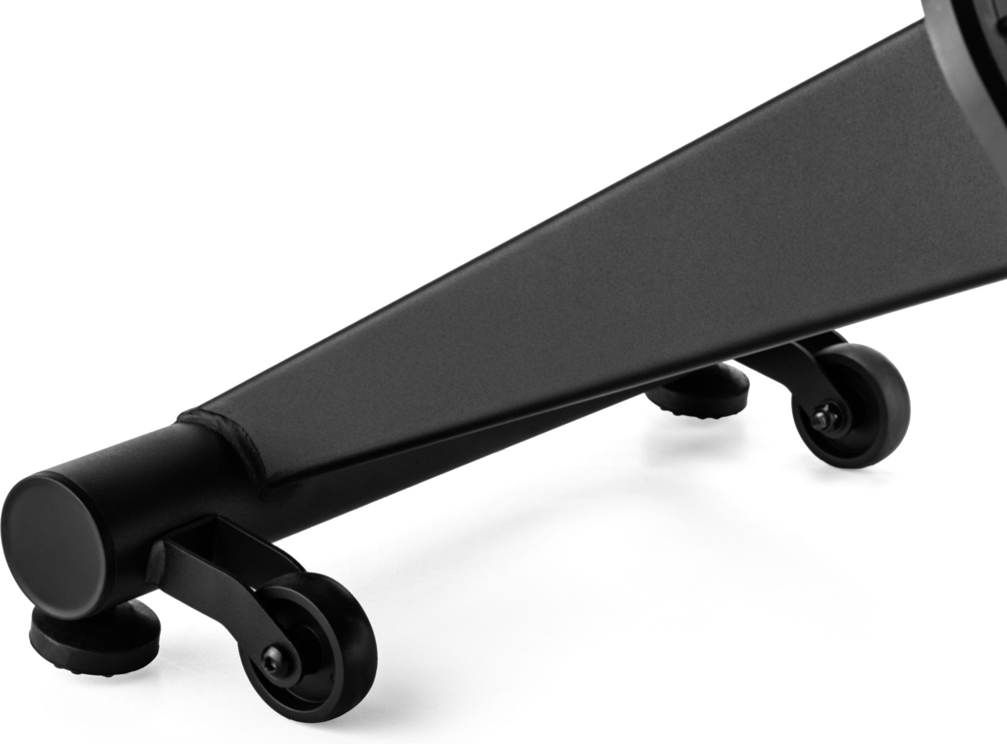 Mechanizm składania umożliwia szybkie i wygodne złożenie urządzenia po treningu, co pozwala zaoszczędzić miejsce w domowej przestrzeni. To praktyczne rozwiązanie ułatwia przechowywanie sprzętu, szczególnie w mniejszych pomieszczeniach.