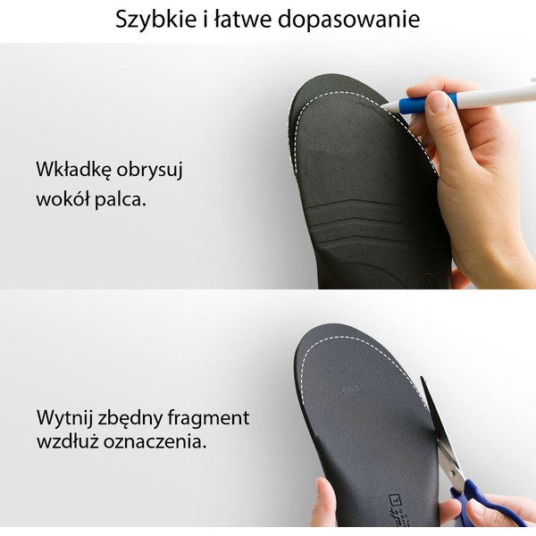 Od teraz Twoje stopy będą mniej zmęczone, a Ty będziesz mógł spacerować ile tylko zapragniesz. Wkładki mają anatomiczny kształt, który wraz z materiałem na pięcie zapewnia uczucie lekkiego kroku. Z tymi wkładkami zadbasz o stabilność stopy w bucie, ograniczając niekontrolowane ruchy stopy.