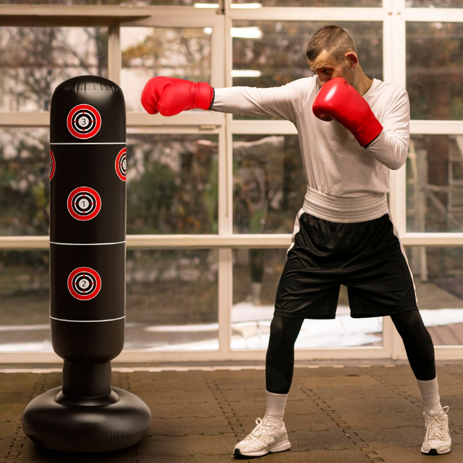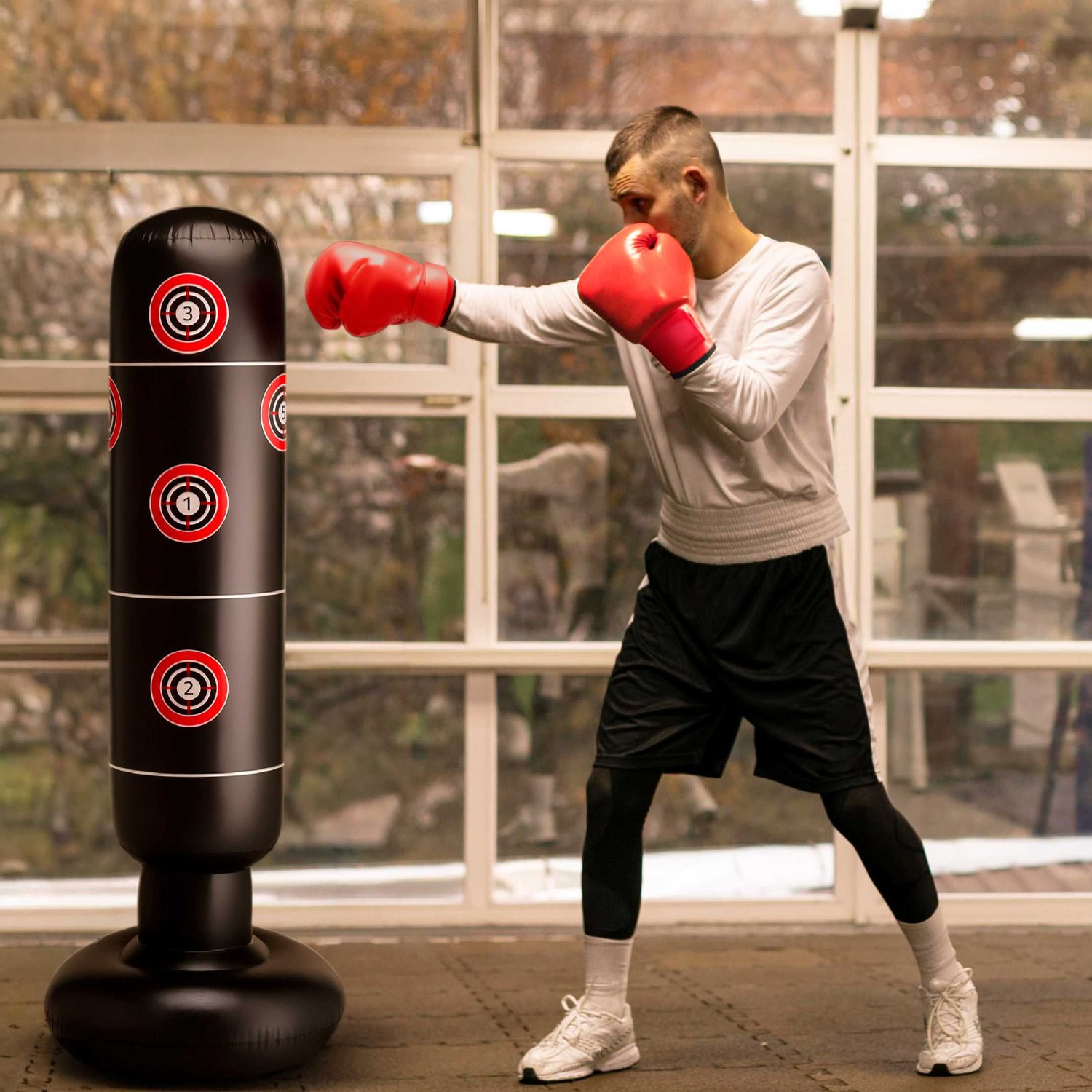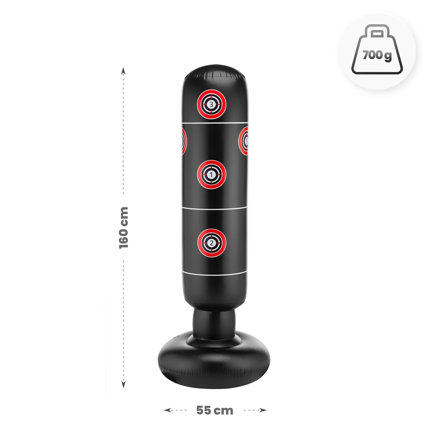 - Natychmiastowa gotowość do treningu: Dołączone akcesoria umożliwiają szybkie napompowanie worka i założenie rękawic, co pozwala rozpocząć ćwiczenia bez opóźnień.