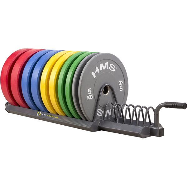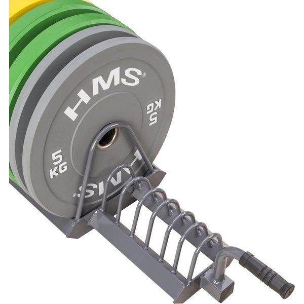 Transport ciężarów nigdy nie był prostszy dzięki mocnym, stabilnym kółkom, które zostały solidnie zamontowane na jednej stronie urządzenia. Przesuwanie wózka z pełnym obciążeniem jest bezproblemowe, nawet na nierównych powierzchniach. Dodatkowym atutem jest uchwyt pokryty antypoślizgowym materiałem. Zapewnia on pewny chwyt, co znacznie zwiększa komfort oraz bezpieczeństwo podczas przemieszczania ciężarów. Dzięki temu, użytkownicy mogą skupić się na treningu, nie martwiąc się o potencjalne zagrożenia wynikające z transportu sprzętu. Konstrukcja wózka jest doskonale przemyślana pod kątem funkcjonalności. Ponadto, przegrody o różnej szerokości umożliwiają przechowywanie talerzy o różnych rozmiarach, co czyni wózek niezwykle uniwersalnym. Możliwość przechowywania aż 16 talerzy sprawia, że organizacja sprzętu staje się prosta i intuicyjna. Estetyka także nie została pominięta. Logo marki HMS umieszczone na boku wózka dodaje mu profesjonalnego wyglądu, który doskonale wkomponuje się w wystrój każdej siłowni.