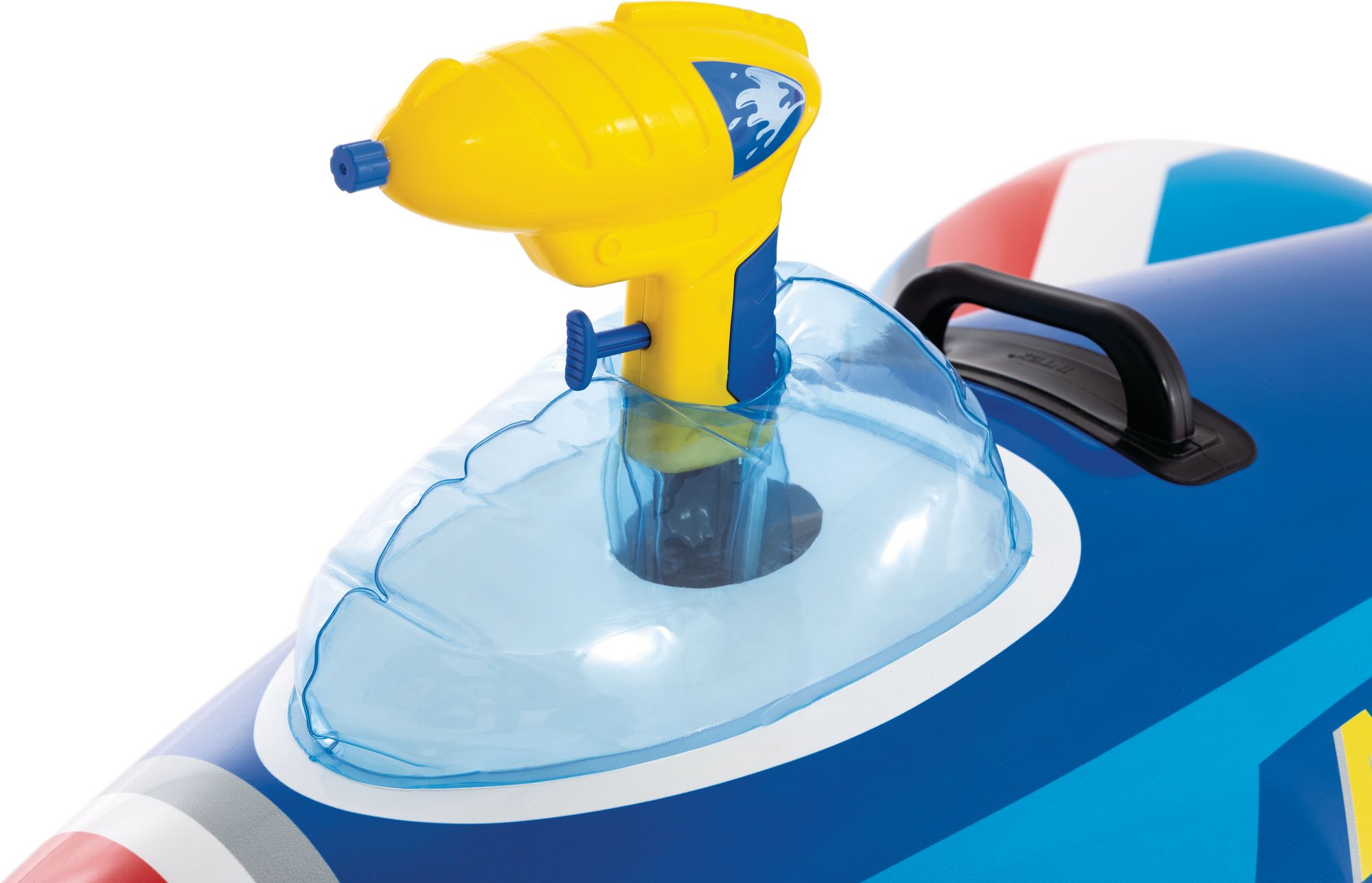 Zabawka do pływania w kształcie samolotu to idealne rozwiązanie dla małych odkrywców pragnących przeżyć przygody wodne. Dzięki wbudowanemu pistoletowi na wodę, zabawa w basenie nabiera nowego wymiaru, pozwalając dzieciom na fascynujące bitwy wodne. Solidny uchwyt zapewnia stabilność i bezpieczeństwo podczas zabaw w wodzie, a przezroczysta osłona kokpitu dodaje realistycznego wyglądu. Lekka, ale trwała konstrukcja z tworzywa sztucznego gwarantuje długotrwałe użytkowanie, a maksymalne obciążenie 40 kg czyni go idealnym wyborem dla młodszych użytkowników.