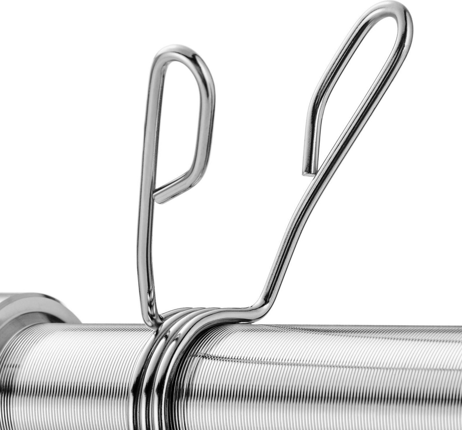 Łatwe zakładanie i zdejmowanie zacisków sprężynowych pozwala na sprawną zmianę obciążeń w trakcie treningu, bez przerywania jego rytmu. Mechanizm sprężynowy zapewnia mocny docisk talerzy do gryfu, eliminując ich przesuwanie się podczas ćwiczeń.