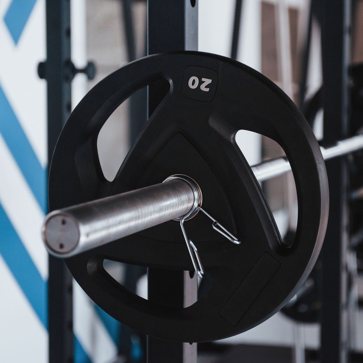 - Bezpieczeństwo podczas treningu: Sprężynowy mechanizm równomiernie zaciska się na gryfie, uniemożliwiając luzowanie się talerzy – nawet przy intensywnym tempie ćwiczeń.