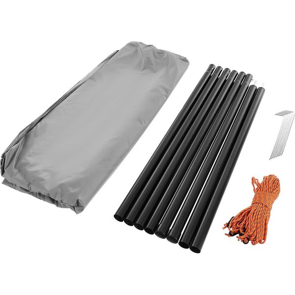 - materiał: żagiel - poliester 210D z powłoką odporna na promieniowanie UV, rurki - stal o średnicy 25 mm, linki - tworzywo sztuczne