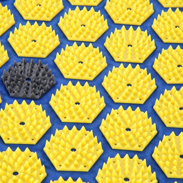 Akupresura to także sposób na usprawnienie krążenia krwi oraz pobudzenie wydzielania endorfin. Pozytywne skutki stosowania maty do akupresury odczują osoby borykające się z bólami kręgosłupa, głowy oraz cierpiący na bezsenność. Poduszka i mata posiadają łącznie niespełna 11 100 punktów masujących w postaci kolców rozmieszczonych na rozetkach. Odpowiednia gęstość rozmieszczenia rozetek sprawia, że uzyskany zostaje optymalny nacisk na ciało.