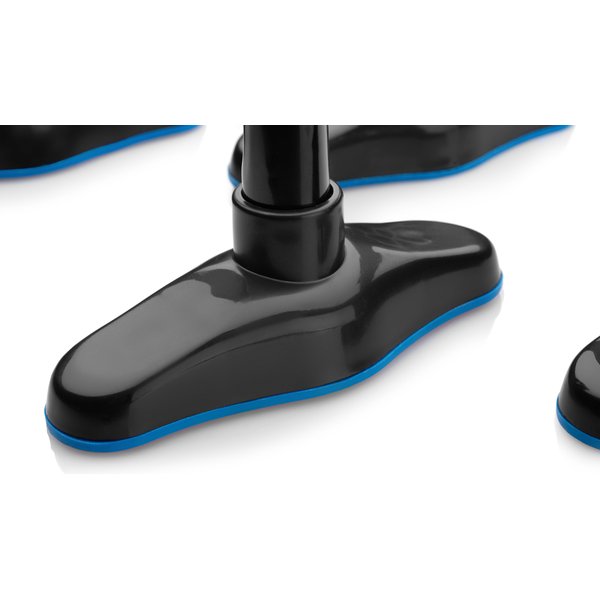 Solidne uchwyty umożliwiają wykonywanie pompek odciążając przy tym nadgarstki, angażując mięśnie do większego wysiłku oraz pozwalają pracować nad techniką. Uchwyty posiadają gumowe stopki o właściwościach antypoślizgowych, które zapewniają bardzo dobrą stabilność. Bez względu na to, jak dynamicznie trenujesz, uchwyty nie będą przesuwać się po podłodze. Stalowy materiał wykonania gwarantuje wysoką wytrzymałość, a część chwytna pokryta pianką zapewnia pewny i stabilny chwyt.