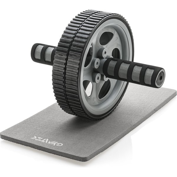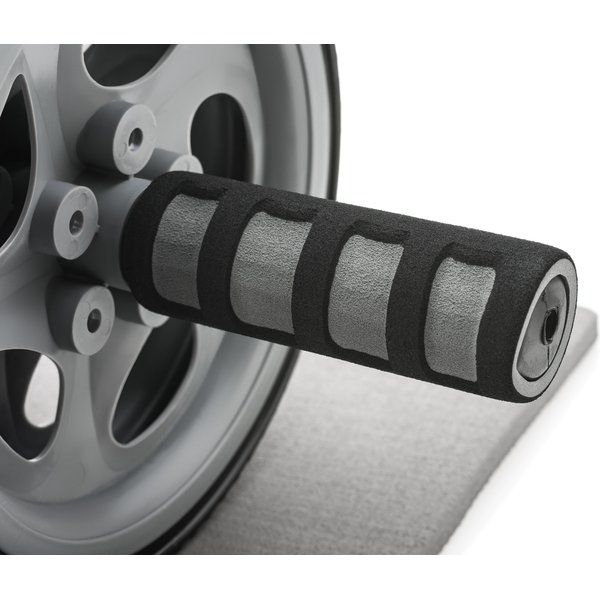 Natomiast ostatni element, jakim jest podwójne kółko do ćwiczeń, posiada również w zestawie miękką matę pod kolana. Ćwiczenia z tym prostym przyrządem mogą stanowić urozmaicenie treningu na brzuch, szczególnie dla osób, które nie mają problemów z wykonywaniem standardowych brzuszków. Przetaczanie kółka po podłodze angażuje do wysiłki znacznie więcej mięśnie niż tylko mięśnie brzucha. Podwójne kółko sprawia, że wałkiem operuje się łatwiej oraz wykazuje on większą stabilność. Ergonomicznie wyprofilowane, antypoślizgowe rączki zapewnią pewny chwyt.