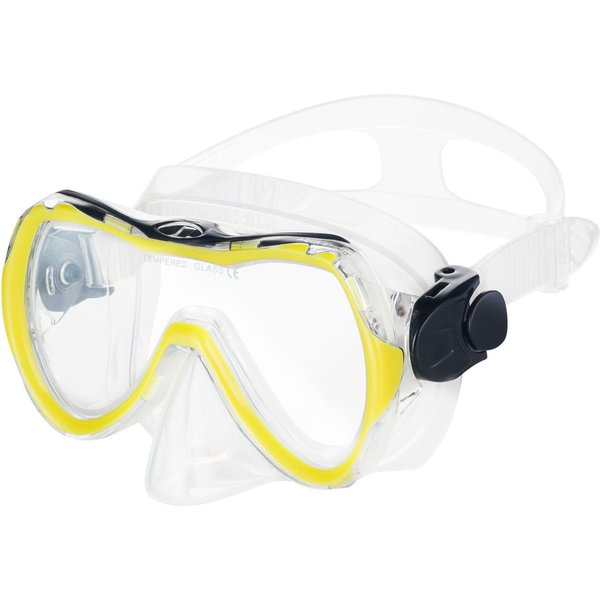 Maska Enzo posiada klasyczny kształt z pojedynczą szybą z hartowanego szkła zapewniającą spore pole widzenia, przez którą maluch może swobodnie obserwować podwodny świat. Rozmiary maski są dostosowane do buzi malucha, a kołnierz i pasek wykonane z silikonu gwarantują łatwą regulację i doskonałe dopasowanie dzięki systemowi Easy-Adjust.