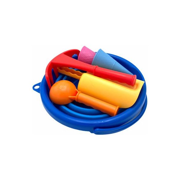 Zestaw wykonany z wysokiej jakości nieszkodliwych materiałów, co ma duży wpływ na środowisko. Ponadto solidna konstrukcja znacznie przedłuża żywotność zabawek. Zestaw jest bardzo poręczny i po złożeniu wiaderka zajmuje niewiele miejsca, co bardzo ułatwia transport i możliwość zabrania go w każde miejsce. W skład zestawu wchodzą: wiaderko, sitko, łopatka, grabki i foremki.
