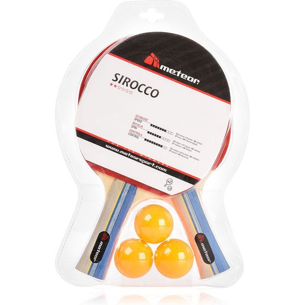 Zestaw do tenisa stołowego 2 rakietki + 3 piłeczki Sirocco** Meteor