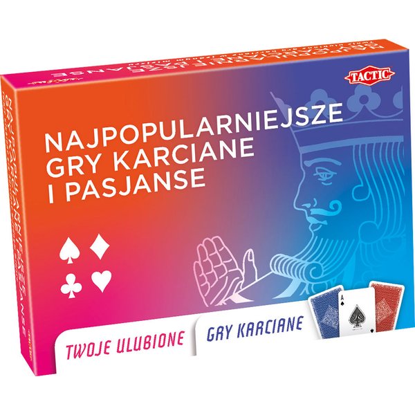 Zestaw gier karcianych i pasjansów Tactic Games to doskonały wybór dla miłośników gier. W niewielkim pudełku znajdują się zasady słynnych gier karcianych oraz popularne gry kasynowe. Dzięki dwóm taliom kart, tablicy wyników, żetonom i banknotom, każda rozgrywka będzie pełna emocji. Ta wielofunkcyjna i poręczna gra zapewnia rozrywkę dla 1-8 graczy w wieku 7+. Niezależnie od preferencji, każdy znajdzie coś dla siebie. To idealne rozwiązanie na wieczory spędzone w gronie przyjaciół lub rodzinie. Przekonaj się sam, jak wiele frajdy może dać ten zestaw gier karcianych i pasjansów Tactic Games.