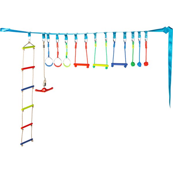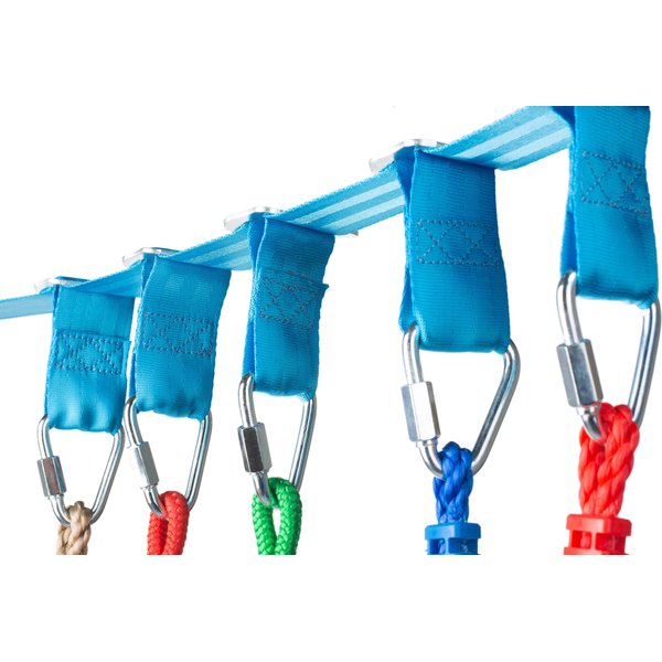 - w zestawie: lima 15m, 2 taśmy 2m, drabinka, huśtawka, 3 pojedyncze drabinki, 3 obręcze, 3 krótkie linki, zapięcie typu klamra japońska, worek