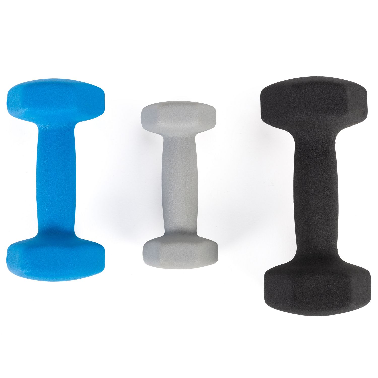 - Gotowy zestaw do stopniowego rozwoju: Trzy pary hantli umożliwiają stopniowe zwiększanie obciążenia bez potrzeby dokupowania dodatkowego sprzętu.