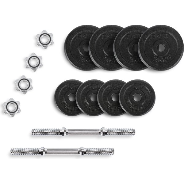 - 4 sztuki żeliwnych obciążników: 2x2,5kg i 2x1,25kg