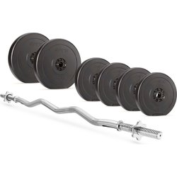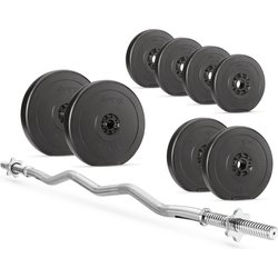 Prezentowany zestaw umożliwia też szybką modyfikację obciążenia. Znajdziesz tu 12 talerzy żeliwnych o wadze 0,5kg, 1,25kg i 2,5kg, co pozwala na duże urozmaicenie ćwiczeń. Gdy trenujesz cardio - załóż mniejsze obciążenie. Gdy planujesz popracować nad bicepsem - większe. To proste i wygodne! Talerze nie przesuną się ani nie spadną, powodując ryzykowną sytuację, co jest zasługą stabilnych zacisków śrubowych. Równomiernie rozkładają one ciężar, a przy tym zapewniają odpowiedni docisk, więc ewentualna kontuzja powodowana zsunięciem się talerza z pewnością Cię nie spotka.