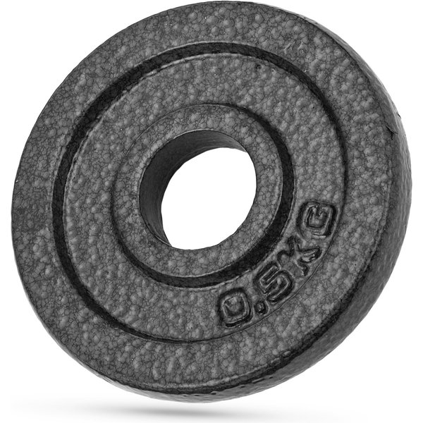 - Indywidualne dopasowanie ciężaru: Zestaw zawiera talerze o różnej wadze (0,5 kg, 1,25 kg, 2,5 kg), co pozwala na precyzyjne dostosowanie obciążenia do własnych możliwości i celów treningowych.