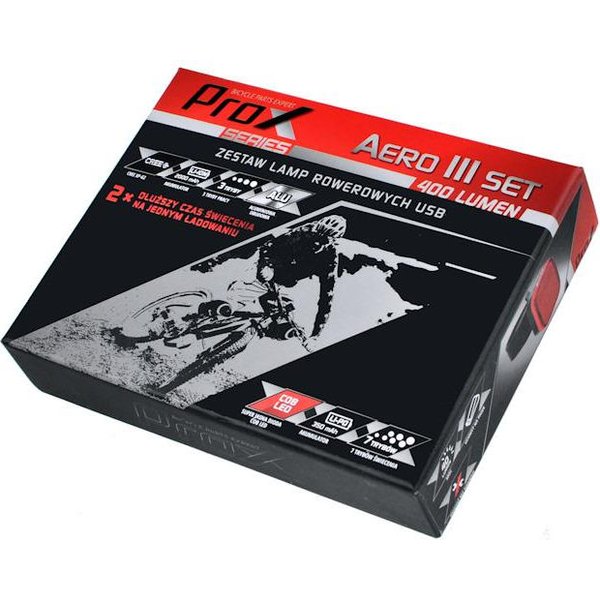 Zestaw lamp rowerowych Aero III Set 400lm + Apus 30lm USB 2szt.Prox