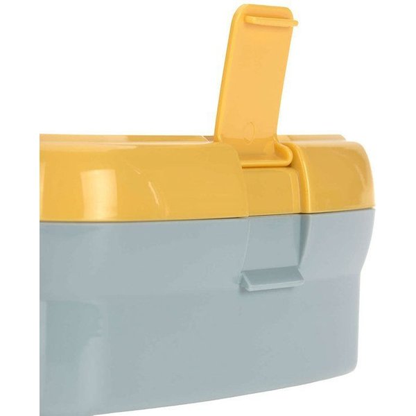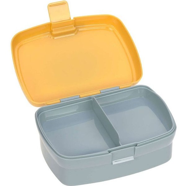 Lunchbox jest dwupoziomowy co pozwala zachować porządek oraz apetyczny wygląd śniadania. Główna część pomieści kanapkę, a wyjmowana, podzielona wkładka świetnie nadaje się na inne przekąski i dodatki. Jego zamykanie jest wygodne i łatwe, dzięki zastosowaniu klipsa. Pojemnik jest mały, ale pojemny dlatego bez przeszkód można go zabrać ze sobą do szkoły czy na wycieczkę wraz z dopasowanym bidonem.