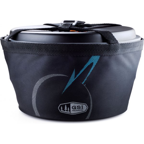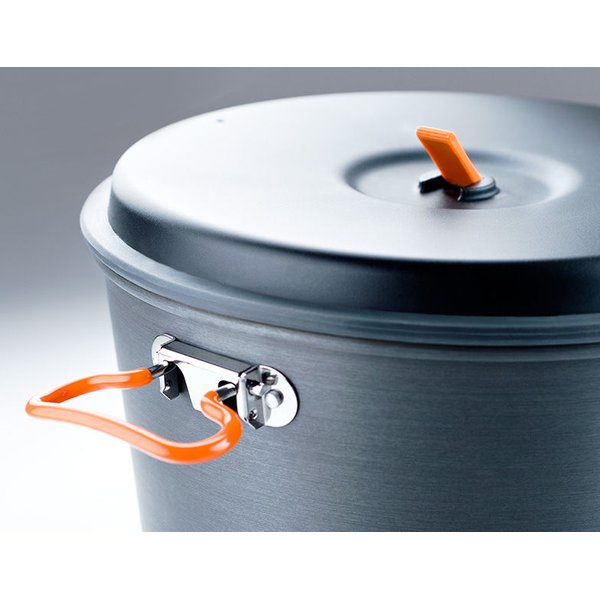 Wszystkie naczynia są odporne na zgniatanie i wysokie temperatury. Podwójne, blokowane uchwyty ułatwiają przenoszenie największego garnka oraz zabezpieczają cały zestaw podczas transportu. Solidny, wodoodporny pokrowiec może służyć nie tylko do przenoszenia i przechowywania naczyń, ale także jako przenośny zlew. Składany chwytak ze specjalnymi wspornikami zapobiegającymi zarysowaniom pasuje, do wszystkich naczyń.