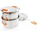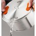 Wszystkie naczynia wykonano z solidnej stali nierdzewnej 18/8, która jest odporna na korozję, wysokie temperatury oraz zgniatanie. Podwójne, blokowane uchwyty ułatwiają przenoszenie największego garnka oraz zabezpieczają cały zestaw podczas transportu. W komplecie znajdziesz również dedykowany pokrowiec wykonany z siatki, który możesz przytroczyć do bagażu.