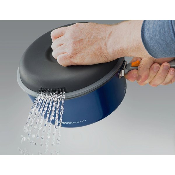 Zastosowanie powłoki nieprzywierającej to kolejna, istotna korzyść tego zestawu. Dzięki niej gotowanie staje się znacznie łatwiejsze, a czyszczenie naczyń po zakończonym posiłku zajmuje dosłownie chwilę. Wysokiej jakości aluminium, z którego wykonane są naczynia, zapewnia równomierne nagrzewanie, co skutkuje lepszymi efektami kulinarnymi. Zgrzewany worek pełniący rolę zlewu kuchennego to innowacyjne rozwiązanie, które znacznie ułatwia zmywanie naczyń po posiłku, nawet w najbardziej ekstremalnych warunkach. Wszystkie elementy zestawu opatrzone są logo GSI Outdoors, co dodaje im unikalnego charakteru i podkreśla ich wysoką jakość.