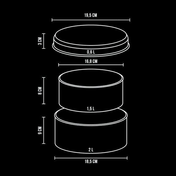 - zestaw zawiera: garnek 2 L, garnek 1,5 L, talerz 0,6 L, chwytak