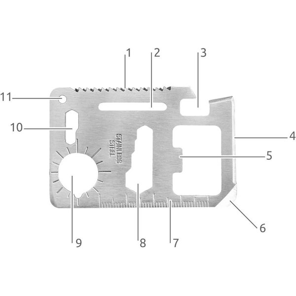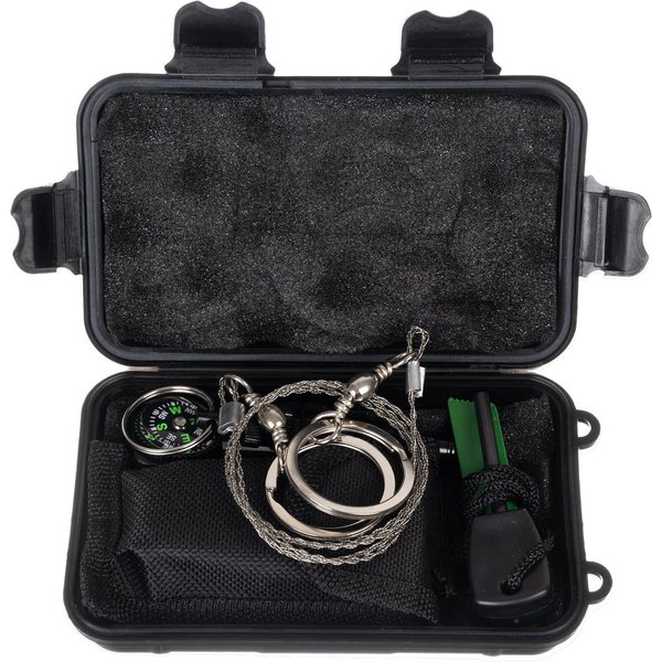 Skompletowany zestaw, który zawiera w sobie wszystkie niezbędne przedmioty do każdej wyprawy. 7 dopracowanych elementów pozwoli na wybrnięcie z sytuacji zagrożeń, które wymagają użycia narzędzi. Wszystko zamknięte w małym i szczelnym etui, pozwalając na schowanie produktu do plecaka czy kieszeni. Dodatkowe otwory na opakowaniu dają możliwość zawieszeniu pudełka na sznurku. Praktyczne akcesoria w etui to prosty w użyciu i łatwy w transporcie gadżet. Zestaw jest przydatny głównie podczas podróży, wypraw; niezbędnik każdego survivalowca i miłośnika pieszych wypraw.