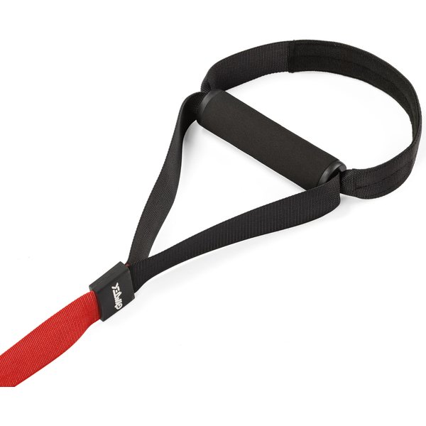 Dodatkowy pasek przedłużający pozwala na swobodne dopasowanie długości taśm do różnych wysokości mocowania, co znacznie rozszerza możliwości treningowe. System dostosowuje się do warunków domowych, siłowni oraz treningu w plenerze.