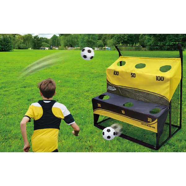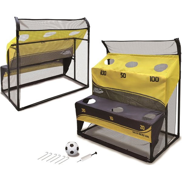 - zestaw zawiera: składana bramka, tarcze strzeleckie, siatka, śledzie, piłka, pompka
