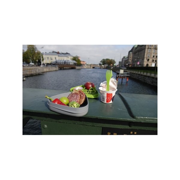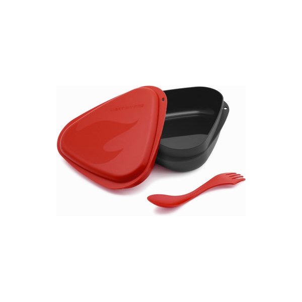 Zestaw naczyń i niezbędnik znajduje zastosowanie jako wyposażenie turysty, na łodzi, na pikniku, w szkole a nawet w biurze jako zestaw śniadaniowy. Zestaw przeznaczony jest do przechowywania i konsumowania jedzenia. Zawiera talerz i miskę oraz niezbędnik Spork (połączenie łyżki z widelcem i nożem). Niezbędnik jest wykonany z polikarbonatu a pozostale elementy z polipropylenu (tworzywo nie reaguje z żywnością i nie zawiera żadnych toksycznych substancji).